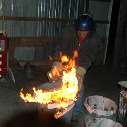 Modern raku is a technique that involves the reducing the vessel or piece in a combustion chamber. We typically use a metal garbage can for a combustion chamber and newspaper or sawdust as reduction materials. We use several different raku glaze formulas and each one requires a slightly different firing technique.